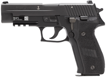 The P226 is the pistol that set the standard by which all other combat handguns are measured. It is used by the U.S. Navy SEALs, federal agents, and numerous law enforcement agencies across the country. The P226 MK25 model is identical to the pistol carried by the U.S. Navy SEALs. It features an engraved anchor on the left side of the slide. It also has an aluminum alloy frame with a stainless steel slide, polymer grips, SigLite night sights, M1913 Picatinny rail. This model includes three 15-round magazines.