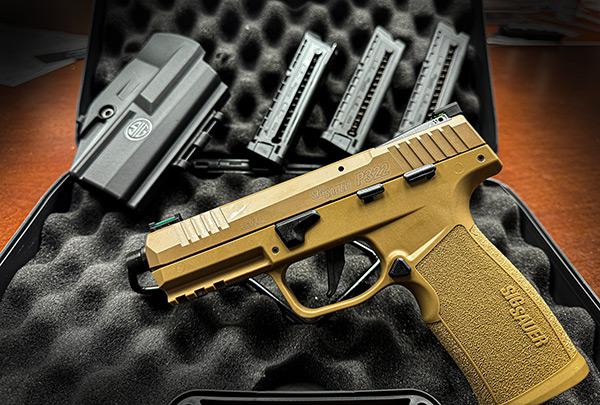 The P322 was completely designed and built loaded with premium features, including an optic-ready removable rear sight plate. The P322 comes with a threaded barrel adapter making it suppressor ready, ambidextrous controls with reversible mag catch, interchangeable flat and curved triggers, fiber optic front and rear sights. Includes three 20rd magazines, holster, threaded barrel adapter, and interchangable trigger shoes.
